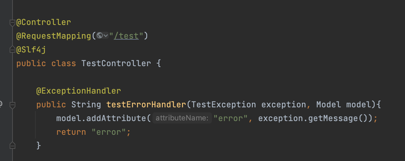 ๋ค๋ฅธ ํธ๋ค๋ฌ์์ TestException์ ๋์ง๋ฉด, testErrorHandler๊ฐ ๋์ํ๊ณ ์๋ฌ ํ์ด์ง๋ฅผ ๋ฐํ