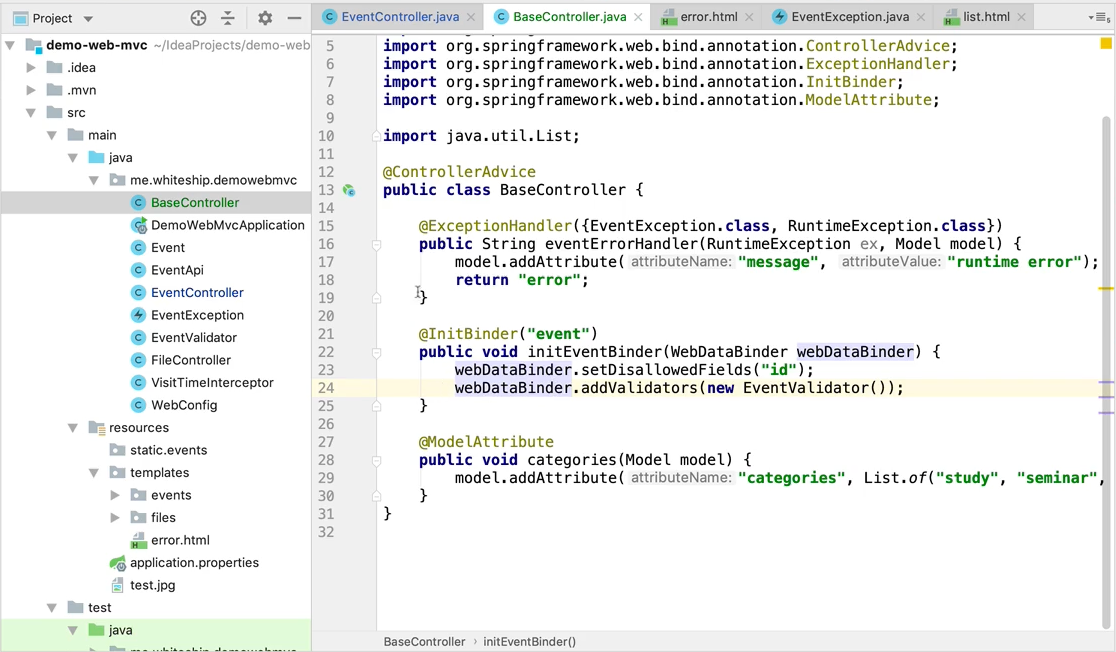- ํน์ ์ปจํธ๋กค๋ฌ ์์์๊ฐ ์๋๋ผ, ๋ชจ๋ ์ปจํธ๋กค๋ฌ์ ๊ฑธ์ณ์ ExceptionHandler, InitBinder, ModelAttributes ๋ฅผ ์ ์ฉํ๊ณ ์ถ์ ๊ฒฝ์ฐ ์ฌ์ฉ